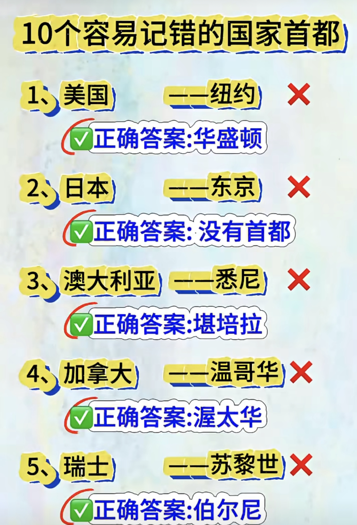 分享几个易错国家首都,助力百团